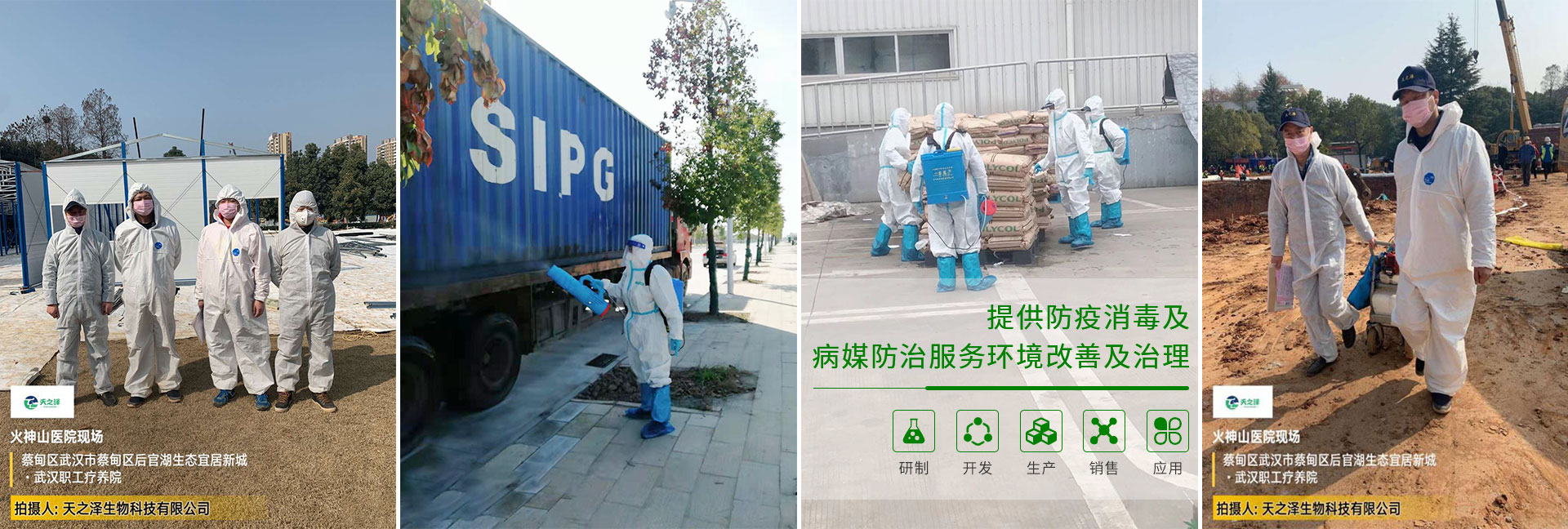 武漢市天之澤生物科技有限公司成立于2014年,是一家專業(yè)性提供防疫消毒及病媒防治服務(wù)環(huán)境改善及治理的公司,具備有害生物防治A級(jí)資質(zhì),消毒服務(wù)B級(jí)。公司自成立伊始就確立了科技興企的發(fā)展戰(zhàn)略,專注于環(huán)保產(chǎn)品研制、開(kāi)發(fā)、生產(chǎn)、銷售及應(yīng)用,聚集了優(yōu)秀的研發(fā)技術(shù)團(tuán)隊(duì)、創(chuàng)新管理團(tuán)隊(duì)和熟悉市場(chǎng)的營(yíng)銷團(tuán)隊(duì),始終堅(jiān)持技術(shù)與服務(wù)兩手抓的發(fā)展策略,能快速響應(yīng)市場(chǎng)需求,提供個(gè)性化的產(chǎn)品與服務(wù)。